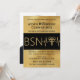 BSN RN LPN Nurse Graduation Party Gold Announcement Invitation. Faux gold leaf and caduceus medical symbol with heartbeat line. Works as both a graduation party invitation or a graduation announcement. Photo on the back is optional. Add a name, nursing degree, 'class of' year details to this elegant black and faux gold themed graduation party invite. Chic modern script calligraphy typography with a heartbeat line and the healthcare caduceus symbol - which can also be deleted or changed to your own graphic. Perfect for nurse pinning ceremony parties too! Look for matching party supplies and decorations and grad cap topper in this store's collection.
