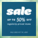 Customise all of the colours and text below "Sale". "Sale" graphic can be scaled or edited in colour, or deleted to add your own text. You can also add a background colour and choose the opaque.