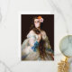 Pop art remix of a vintage painting of a woman with two flowers in her hair blowing a pink bubble gum