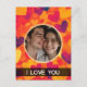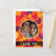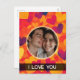 This customisable design has mainly warm coloured hearts scattered around a circular mask in which you can place your own photo. You can also customise the message.