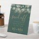 Featuring pretty string lights, this emerald green and gold elegant script bubble send-off sign is perfect for all celebrations. Designed by Thisisnotme©