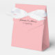 These bubblegum pink wedding favor boxes feature a solid blush tone that beautifully coordinates with the Bubblegum Blush suite, topped with a crisp white satin-look bow for a sweet and polished presentation. Personalized names and wedding date in elegant script add a thoughtful touch, making them perfect for gifting candies, small treats, or keepsakes at receptions, bridal showers, or engagement parties.