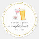 'Bubbles and brew' theme watercolor champagne and beer toasting to love Bridal/couples shower round stickers/ seal.  Personalise with names of the bride and groom and shower date.