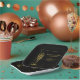 Mark the milestone in sophistication with this customisable birthday plates. The bold headline “Bubbles and Cheers to 50 Years” stands out in golden serif font against a black background with an elegant golden border. Champagne glasses with bubbles add a festive touch on the front and back. All party details are easy to personalise, and the design works perfectly for any age and for both women and men.