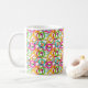 This mug has a geometric design of three circles nested together and spread throughout the design in several colours.