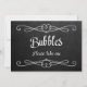 Simple and elegant chalkboard style "Bubbles please take one" wedding sign.