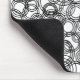 This mouse pad has a mid-century modern design of concentric circles scattered about the whole design.