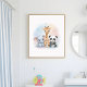 Brighten up the room with this adorable kids bathroom wall art featuring baby animals surrounded by soft pastel bubbles.