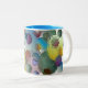 three dimensional bubbles that have the illusion of stained glass. Most ANY COLOR on the inside blends well with this design. colour and style of mug can be changed. look for matching plates.