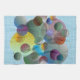 a collage of circles and rings in a three dimensional design with a soft linen texture created this illusion of floating bubbles. fun towel to match any colour scheme. digital computer art by kaps images