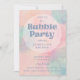 Bubbly background with large text; open full editor to delete "bubble party" to add a different title.