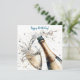 A beautifully illustrated image of a champagne bottle being poured into a crystal glass. The champagne is bubbly and sparkles in the light, with droplets of liquid splashing around, creating an energetic and celebratory atmosphere.