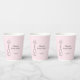 Celebrate the bride-to-be with champagne and good wishes! These paper cups feature a whimsical hand drawn popping champagne bottle design, personalized with the bride's initial.