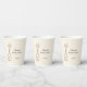 Celebrate the bride-to-be with champagne and good wishes! These paper cups feature a whimsical hand drawn popping champagne bottle design, personalized with the bride's initial.