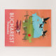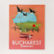 Bucharest Romania vacation map with flying geese and a red biplane.