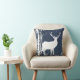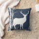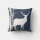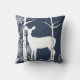 If you love birch trees, deer, nature, and wildlife you'll love this pretty pillow in black, blue, and white featuring a white silhouette deer with a buck on one side, doe on pillow back, blue snowy night sky, big white snowflakes, and white birch trees!