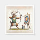 Cartoon buck deer wearing a vest shooting an arrow at a target on an easel