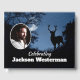 Celebrate the life of your loved one with this design featuring a beautiful buck silhouetted against a starry night sky.