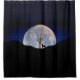 Beautiful vector type image of a deer with huge rack on a hill against a rising full moon with birds flocking from the branches of an leafless tree.
