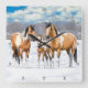 A family of buckskin or dun pinto horses in their winter ranch corral.