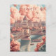 A whimsical, vintage-inspired postcard illustration of Budapest, Hungary, featuring the iconic Chain Bridge and the Hungarian Parliament Building. The Danube River flows beneath the grand suspension bridge, while hot air balloons float among pastel-hued clouds, creating a magical and nostalgic atmosphere. The hand-drawn details and soft colour palette evoke a sense of timeless wonder, making this a perfect artistic tribute to one of Europe's most beautiful cities.