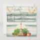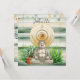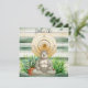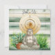 Buddha resting in fresh green grass with a potted plant and a ladybug appearing on the left knee. Buddha is positioned in front of a gold gong and there is a green and ivory shiplap design in the background. The reverse of this birthday, retirement or celebration garden party invitation is fully customisable. Add all of your party details and additional information for your guests on the back of this card. The reverse contains a different Buddha inspired graphic with potted plants. Perfect for yoga enthusiasts and gardeners. Have a great time at your party!
