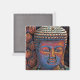 Colourful Buddha with patterned wallpaper. Mixed media digital painting by Sheryl Karas.