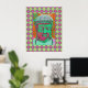 Buddha Pop with Patchwork Borders in Green and Red Poster