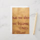 Buddha Quote; What We Think We Become, on beautiful hand brushed copper metallic background. Great for celebrating Buddism holidays such as Vesak (Buddha's birthday, also known as "Hanamatsuri" it is celebrated April 8), Magha Puja, (an important religious festival celebrated by Buddhists in Thailand, Cambodia, and Laos), Asalha Puja Day, Uposatha, Kathina Ceremony, Abhidhamma Day, Songkran, Loy Krathong, Madhu Purnima, The Ploughing Festival, The Elephant Festival, The Festival of the Tooth, Ulambana or Ancestor Day, Avalokitesvara's Birthday: This festival celebrates the Bodhisattva ideal. On the full moon day in March. It represents the perfection of compassion in Mahayana traditions of Tibet and China. Bodhi Day: The holiday which commemorates the day that the historical Buddha experienced enlightenment.