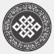 The endless knot is a symbolic knot and one of the Eight Auspicious Symbols of Buddhism. The Endless knot symbolises Samsara, the endless cycle of suffering or birth, death and rebirth within Tibetan Buddhism. This Endless knot is surrounded by a circular vintage floral pattern, the design is in black and white colours.