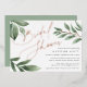 Simple and elegant bridal shower invitation for modern brides-to-be features "bridal shower" at the top left in chic rose gold foil script typography with soft green watercolor leaves and branches. Personalise with your bridal shower details in grey lettering. A modern bridal shower invitation in a boho nature inspired colour palette with real foil accents.