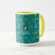 ake your daily dose of holiday cheer—and coffee!—in this amazing Buddy the Elf Pattern Mug. This unique mug is packed with an all-over graphic collage featuring everything fans love: Buddy's face, the New York City skyline, and famous phrases like "World's Best Cup of Coffee," "Son of a Nutcracker!," and "This is NOT the North Pole." With its eye-catching teal background and contrasting whimsical yellow handle and interior, this two-tone mug is a must-have for any true Elf enthusiast. It's the perfect size for cosy holiday drinks and makes an excellent, unique Christmas gift for coworkers, friends, or anyone who appreciates the festive fun of the classic film.