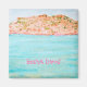 Shows a turquoise sea and island in the mediterranean called Budelli island - from a original painting. Also with "budelli island" slogan !