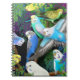 Original fine art design of colourful Budgerigars or Budgies in Maidenhair ferns by artist Carolyn McFann printed on a quality notebook for parrot fans.