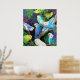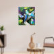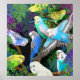 Customise this poster to the size you want from small to huge, and the price will adjust automatically. Colourful budgies from white to violet in this painting by illustrator Carolyn McFann of Two Purring Cats Studio.