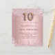 A modern, stylish and glamourous invitation for a girl's 10th birthday party. A dusty rose, pink faux metallic looking background with faux glitter drip, paint dripping look. The name is written with a modern dark rose gold coloured hand lettered style script. Personalise and add your party details. Number 10 is written with a balloon style font, script.