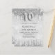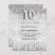 A modern, stylish and glamourous invitation for a girl's 10th birthday party. A faux silver looking background, decorated with glitter dust. Personalise and add your name nad party details. Number 10 is written with a balloon style font, script.