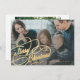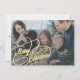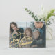 Elegant faux gold Merry Christmas script overlay with 2 custom photos, family name, and text personalized budget holiday note cards with envelopes.