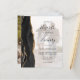 This elegant wedding design features a vertical photo of the couple softened with a white screen to highlight the text overlay. The left-hand edge features a black watercolor agate border trimmed with faux gold glitter. The customizable black text combines handwriting, copperplate and italic fonts. The reverse side features a matching black and gold agate edge. Easily replace the sample image on the back with a second vertical photo.