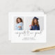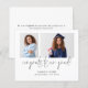 A value for money BUDGET alternative on a smaller size 4.5 x 5.6” semi-gloss 110lbs weight, which is of similar thickness to a postcard (however is not suitable to use as a postcard.). PLEASE NOTE there is ONE per sheet. Budget 2 Photo Script Congrats to Grad Graduation Announcement. Simply replace the two sample photos with your own and personalise text as required. Congrats to our Grad is in a stylish set script.