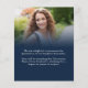A value for money BUDGET alternative on a smaller size 4.5 x 5.6” semi-gloss 110lbs weight, which is of similar thickness to a postcard (however is not suitable to use as a postcard.). PLEASE NOTE there is ONE per sheet. Budget 2 photo Navy Blue Gold 2025 Graduation Announcement. A modern text and photo design to announce the news of your high school senior class graduate, with stylish large typography rotated and to the right hand side at the top in black and gold. Easily personalise the rest of the text including your message on the back. Replace the photos in the templates on each side with your own.