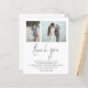 A value for money BUDGET alternative on a smaller size 4.5 x 5.6” semi-gloss 110lbs weight, which is of similar thickness to a postcard (however is not suitable to use as a postcard.). PLEASE NOTE there is ONE invite per sheet. Budget 2 Photo QR Code Wedding Thank You. Informal minimalist style. Simply replace the two sample photos with your own favourites. Thank You is in an elegant handwriting style set script, and easily personalise the rest of the text. Add your QR code to your wedding online photo gallery on the back makes this a convenient opportunity to let your guests know how to view your photos. You can create QR codes for free online. Simply search “QR code creator” and lots of options come up to create for free.