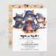 Cute Trick or Treat Invitation for the entire family featuring the cutest 3 little cat witches with their little hats and capes illustration. You can personalise this Invitation with your details.