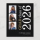 A value for money BUDGET alternative on a smaller size 4.5 x 5.6” semi-gloss 110lbs weight, which is of similar thickness to a postcard (however is not suitable to use as a postcard.). PLEASE NOTE there is ONE invite per sheet. Budget 3 photo 2025 Black Graduation Announcement. A modern stylish typography and multi photo design, with large text rotated and to the right hand side in white and gold on a background of black. Easily personalise the rest of the text and replace the photos in the templates with your own of square orientation.