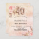 A rose gold, blush pink rustic faux metallic looking background. Decorated with rose gold and pink florals, roses, pampas grass. Personalise and add a name and party details. Number 40 is written with a balloon style font.