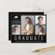 Budget-friendly minimal modern black graduation announcement and party invitation featuring a 4 picture photo collage, "Graduate" written in large white letters and his or her class year, name and school or university in simple white typography. Add the party details on the reverse side.