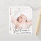 A budget-friendly option to announce your baby's birth, featuring his or her photo overlayed with "Welcome" written n a stylish script. Add his or her name, birth date and birth stats. On the back, add three additional photos and personalised message.