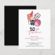 Budget 50 and fabulous 50th birthday invitation with watercolor-illustrated makeup design. Designed and illustrated by Kristine Lee Designs www.kristineleedesigns.com