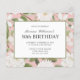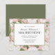 A beautifully feminine party invitation to celebrate a 50 th birthday in elegant botanical style, This design features an elegant botanical pattern of white flowers and leaves in watercolor palette of ivory, cream sage and moss green on a chic and girly pink background with your wedding details displayed in a modern combination of cursive and serif fonts over a white frame with a chic green border.