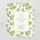 Budget 50th birthday party lemon citrus pattern invitation. Modern, trendy summer watercolor lemon design. Easy to change the text.